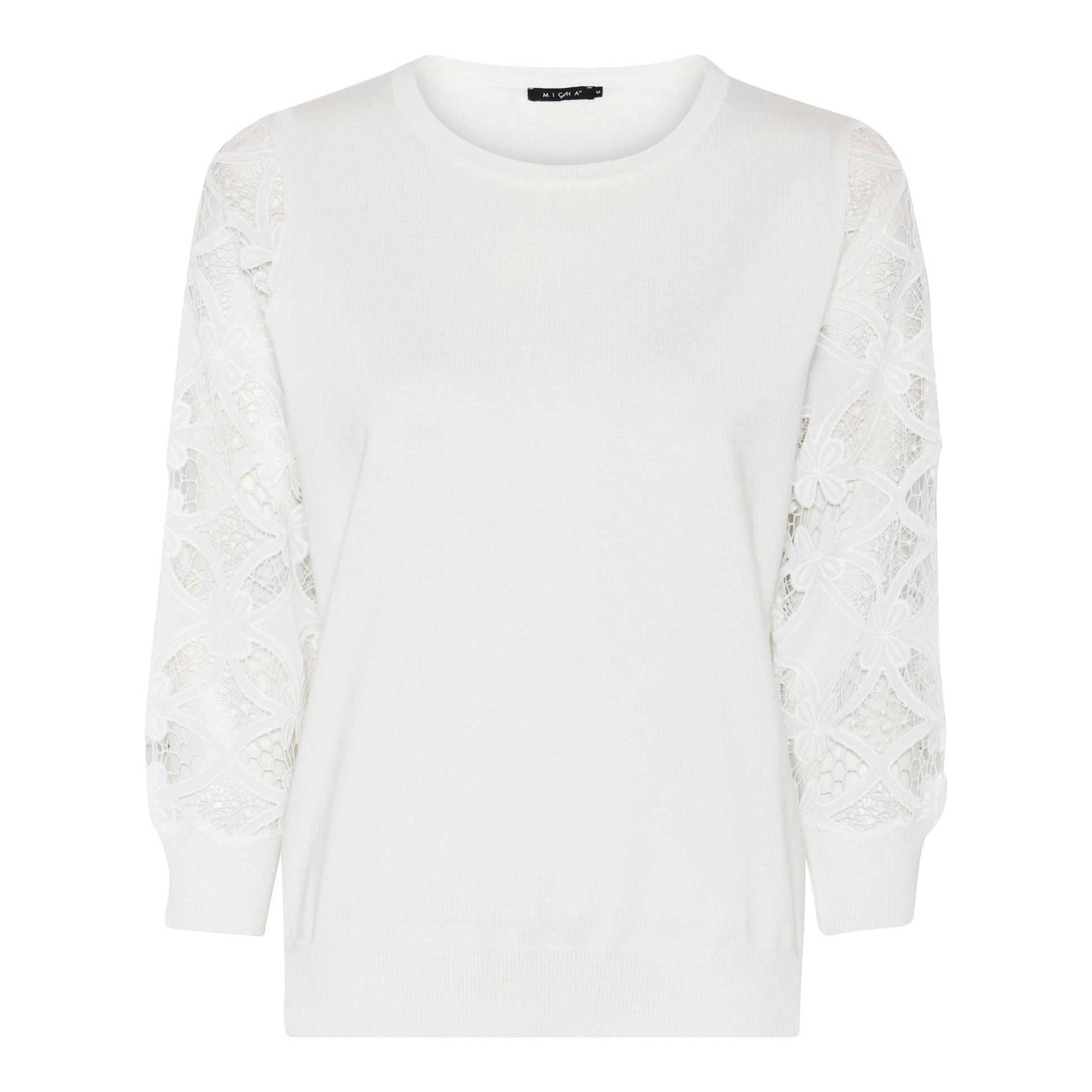 Truitje met ronde hals en lange mouwen in kant in wit van Micha. 75% Viscose - 25% Polyamide. Mooie lente basic!