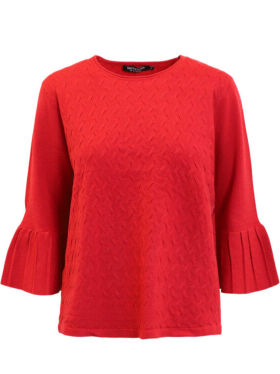 Trui met 3/4 mouwen en ronde hals voor dames van Signature (Brandtex). Kleur rood. Met fantasie aan de mouwen. Feestelijke look. Ook verkrijgbaar in zwart en ecru.