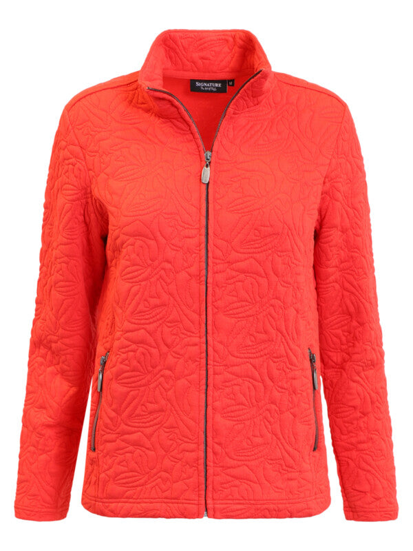 Vest voor dames met ritssluiting in koraalrood van Signature (Brandtex). Gewafelde structuur in de stof. Sluiting tot boven. Met twee zakken met ritssluiting.