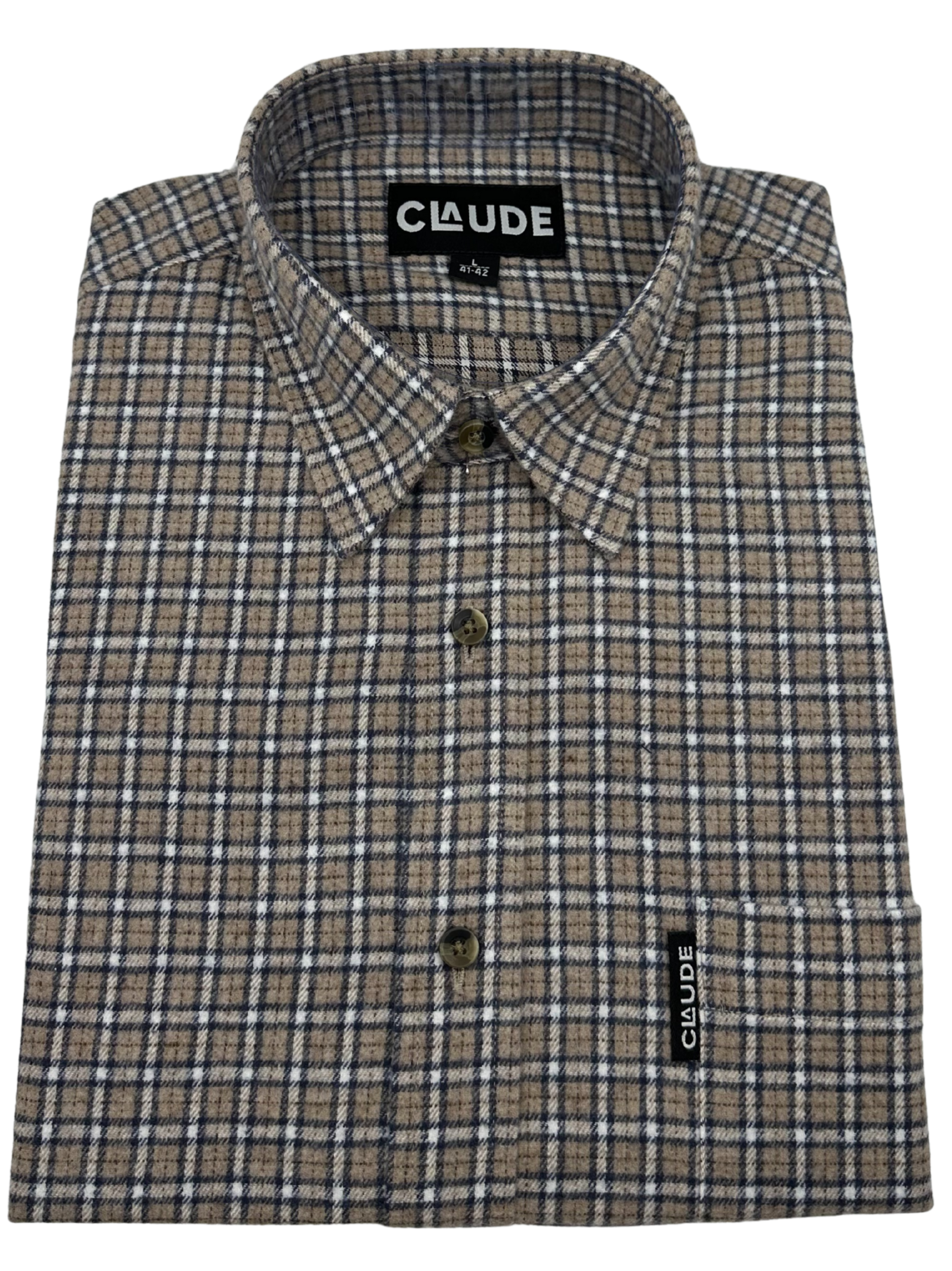 Herenhemd in 100% katoen-flanel met ruitmotief van Claude. Lange mouwen. Verkrijgbaar van maat small (37/38) tot maat XXXlarge (47/48). Warm en zacht.