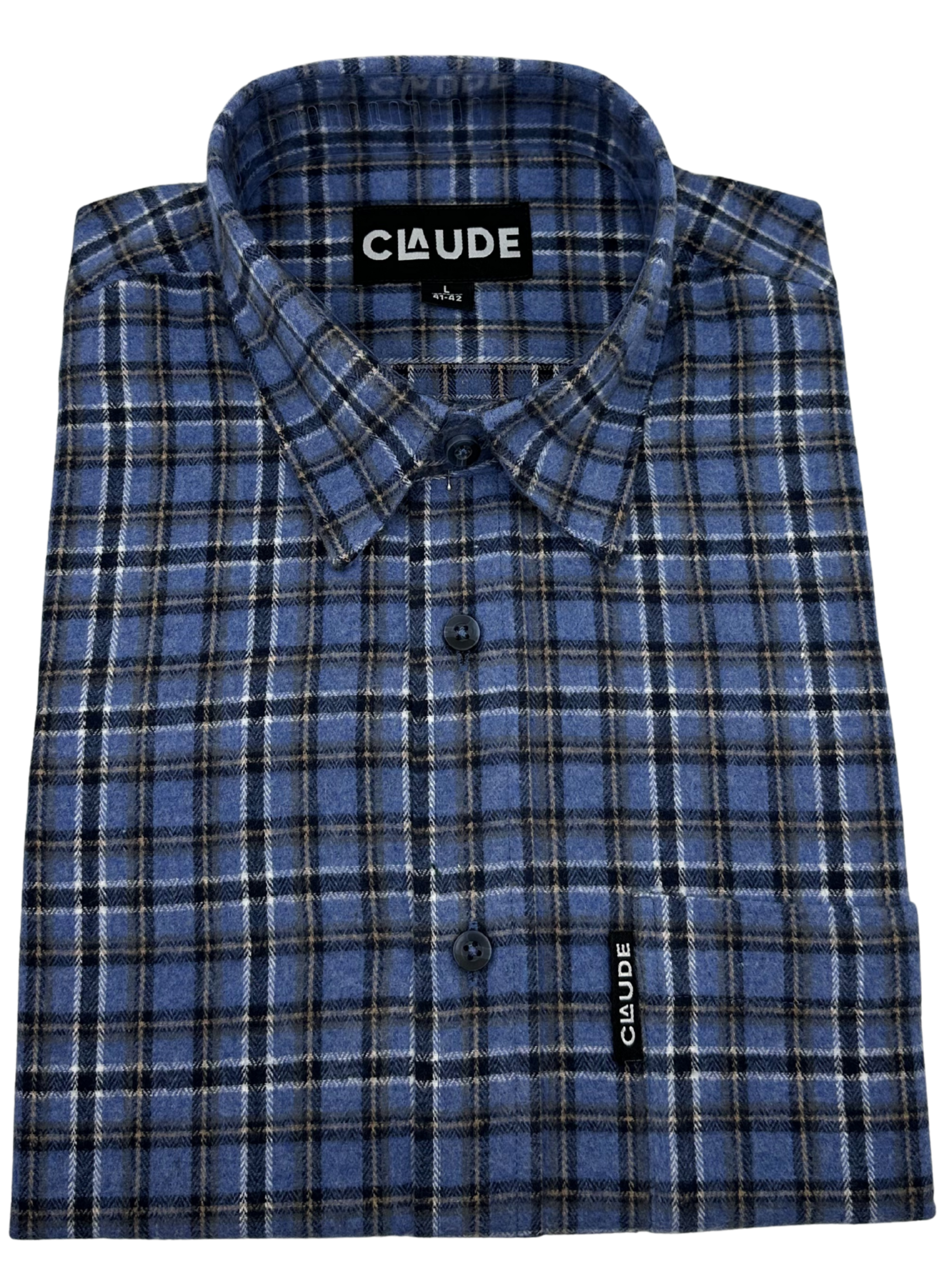 Herenhemd in 100% katoen-flanel met ruitmotief van Claude. Lange mouwen. Verkrijgbaar van maat small (37/38) tot maat XXXlarge (47/48). Warm en zacht.